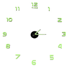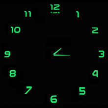 Pulkstenis pašmontāžai. Komplektā ir arābu cipari un vārds "Time". Fluorescējošās uzlīmes padarīs pulksteni spīdīgu tumsā. Pulksteņa izmērs ir atkarīgs no elementu izvietojuma. Lielisks interjera dekors. Skaitļu izmērs: 5,3 cm.