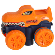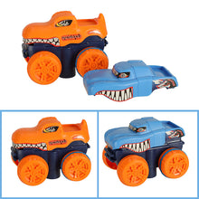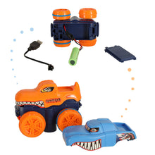 Ar baterijām darbināms automobilis ar maināmu virsbūvi divās krāsās (oranžā un zilā).