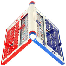 Spēlētāji sēž viens otram pretī, un viņiem priekšā ir abpusēja tāfele.