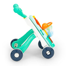 Vienkārši noņemiet paneli stūmēja priekšpusē, uzstādiet kājas un varēsiet izmantot funkcionālo galdu ar daudz kustīgu elementu. Interesants papildinājums ir mazas klavieres, kuras spēlē skaņas un melodijas, tas noteikti ātri kļūs par rotaļlietas iecienītāko elementu, sagādājot ikvienam bērnam lielisku prieku.
