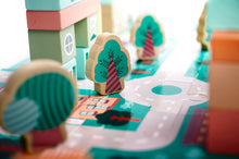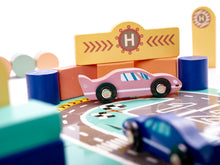 Pilsētā nedrīkst trūkt svarīgāko - ielu un automašīnu.. Komplektā ir puzle, kuru saliekot, izveidojas dēlis ar ielu joslu. Tie lieliski papildinās visu kopumu.