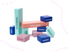Pasakaini krāsainu koka ķieģeļu komplekts noteikti atvieglos darbu.