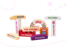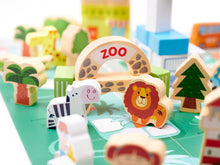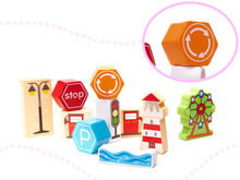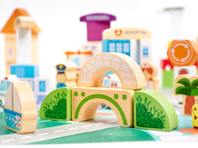 Izglītojoši koka pilsētas puzles klucīši 120el.