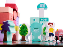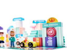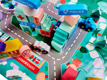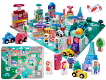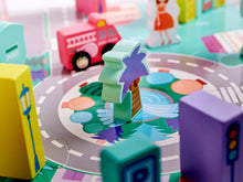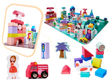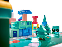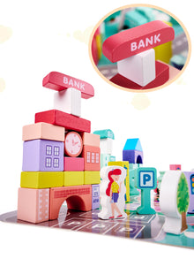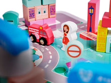 Izglītojoši koka pilsētas puzles klucīši 128el.