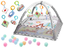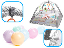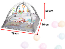 Izglītojošs paklājiņš ar lāpstiņām Rotaļu krēsls ar bumbiņām pelēks