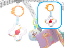 Pievienotās krāsainās grabulīši un grāmatiņa ar šūpojošām lapām piesaistīs mazuļa uzmanību un stimulēs redzi, dzirdi un tausti. Turklāt tas ir lielisks ievads formu un krāsu pasaulē.