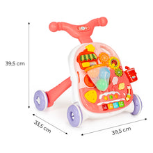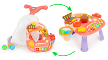 Jūs varat viegli pārvērst stūmēju par galdu, vienkārši atvienojot izglītojošo paneli no stūmēja konstrukcijas un uzstādot kājas. Pateicoties tam, jūsu bērnam ir tabula kas piesaistīs viņu spēlēt un tādējādi attīstīs viņa roku prasmes.