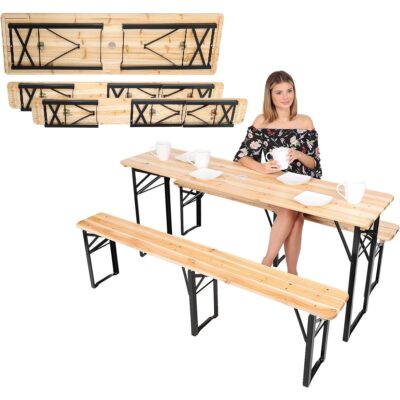 42,90 €CAMPING SET Foldable travel table 4 stools included in the set Adjustable table height Safety lock to prevent accidental folding Quick and easy folding/unfolding system Convenient handle for transport Folds into a suitcase and takes up very little space Perfect set for camping / picnic / outdoor trips SET FOR EVERY TRAVELER Camping trips are…