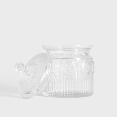 Elegant decorative embossing Glass lid with handle BARREL glass container 1.3 l Are you looking for a storage container that is not only practical to use, but elegant at the same time? A glass container with decorative embossing and a decorative lid is the perfect choice no matter what you intend to store in it….