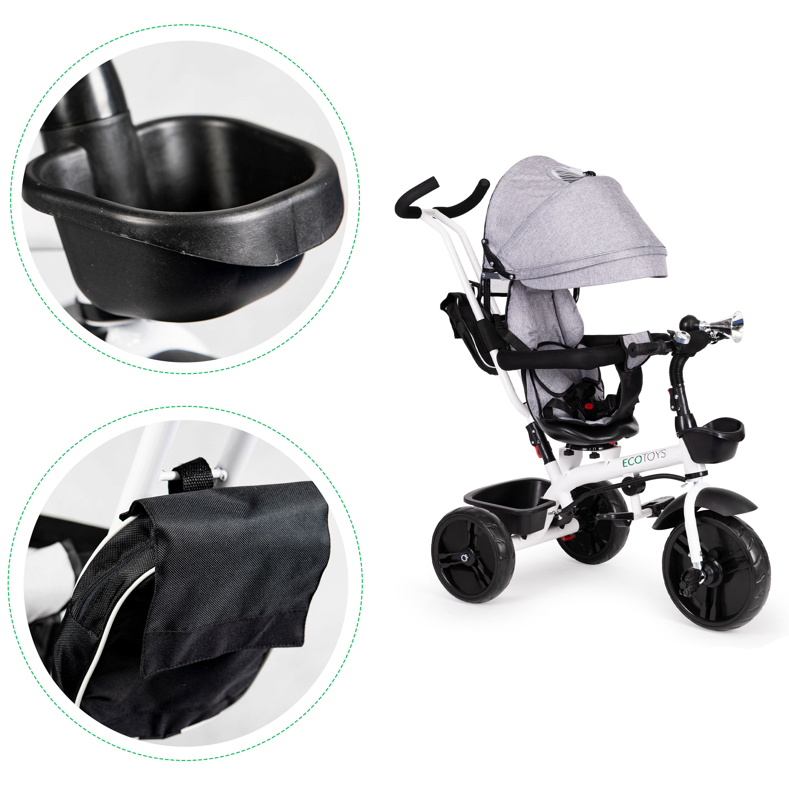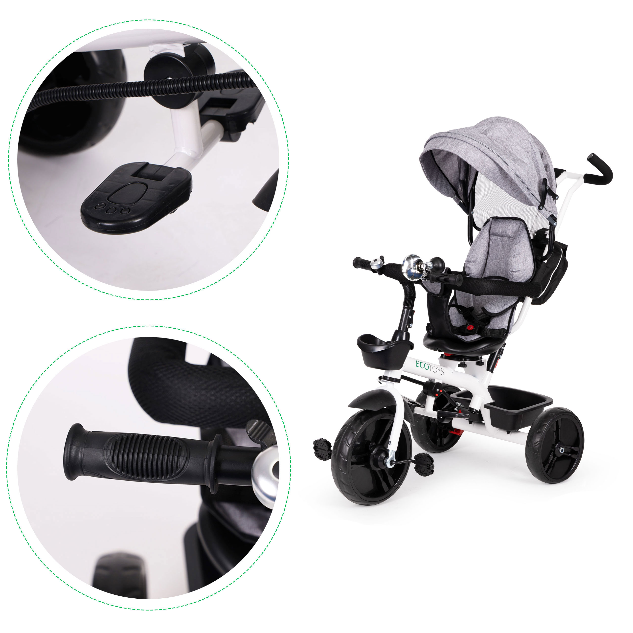 360° Rotating Tricycle with Canopy Grey ECOTOYS