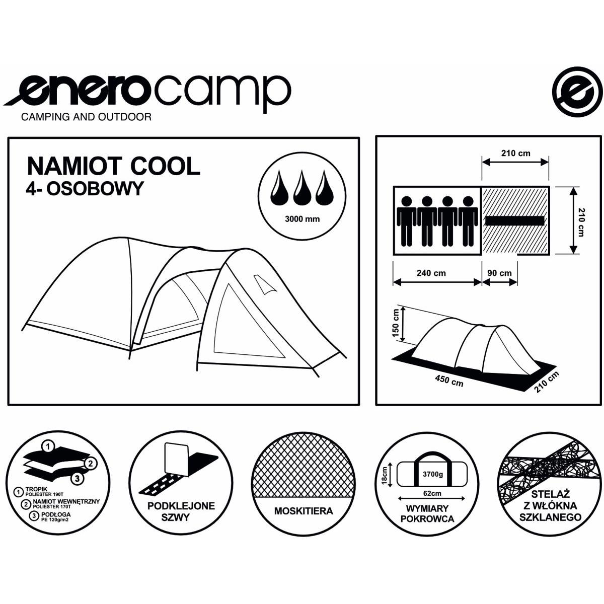 If you need a portable bedroom, love camping and overnight stays in nature, then the COOL ENERO CAMP 4 PERSON TOURIST TENT will be perfect.