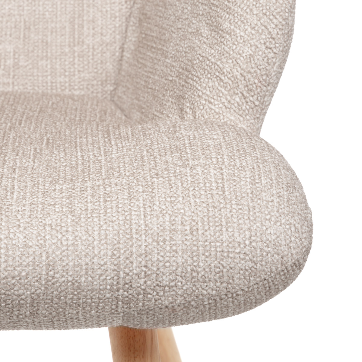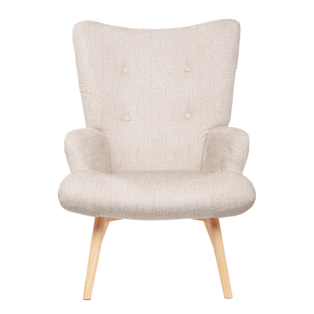 Beige lounge armchair on wooden legs