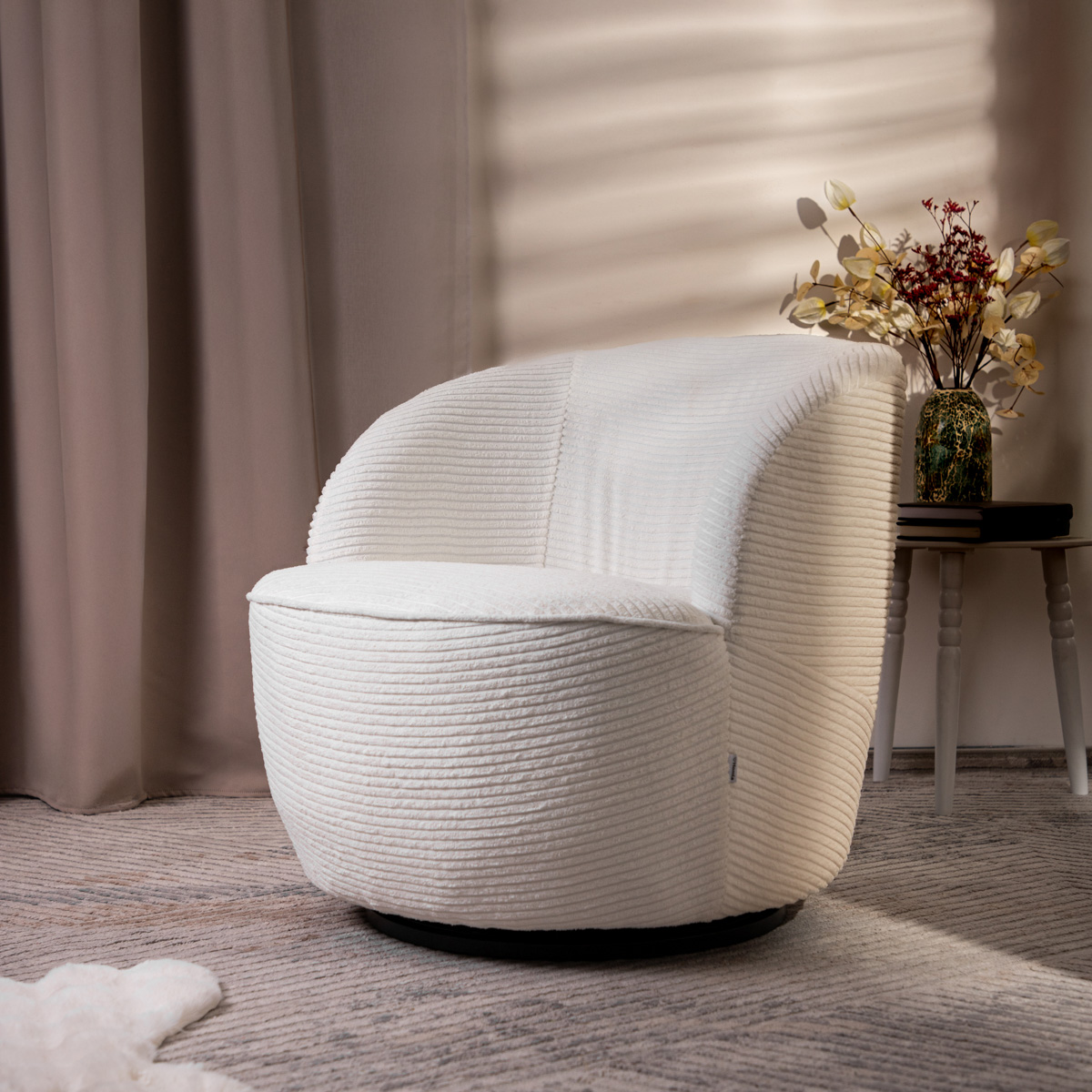 Treat yourself to a bit of luxury with the SVINGEN FASO armchair. In an elegant white shade, it not only adorns the interior, but also provides maximum comfort thanks to its swivel function and soft upholstery. Perfect for your living room, bedroom or home office, wherever you place it, it will instantly add a touch of class and style to your interior.