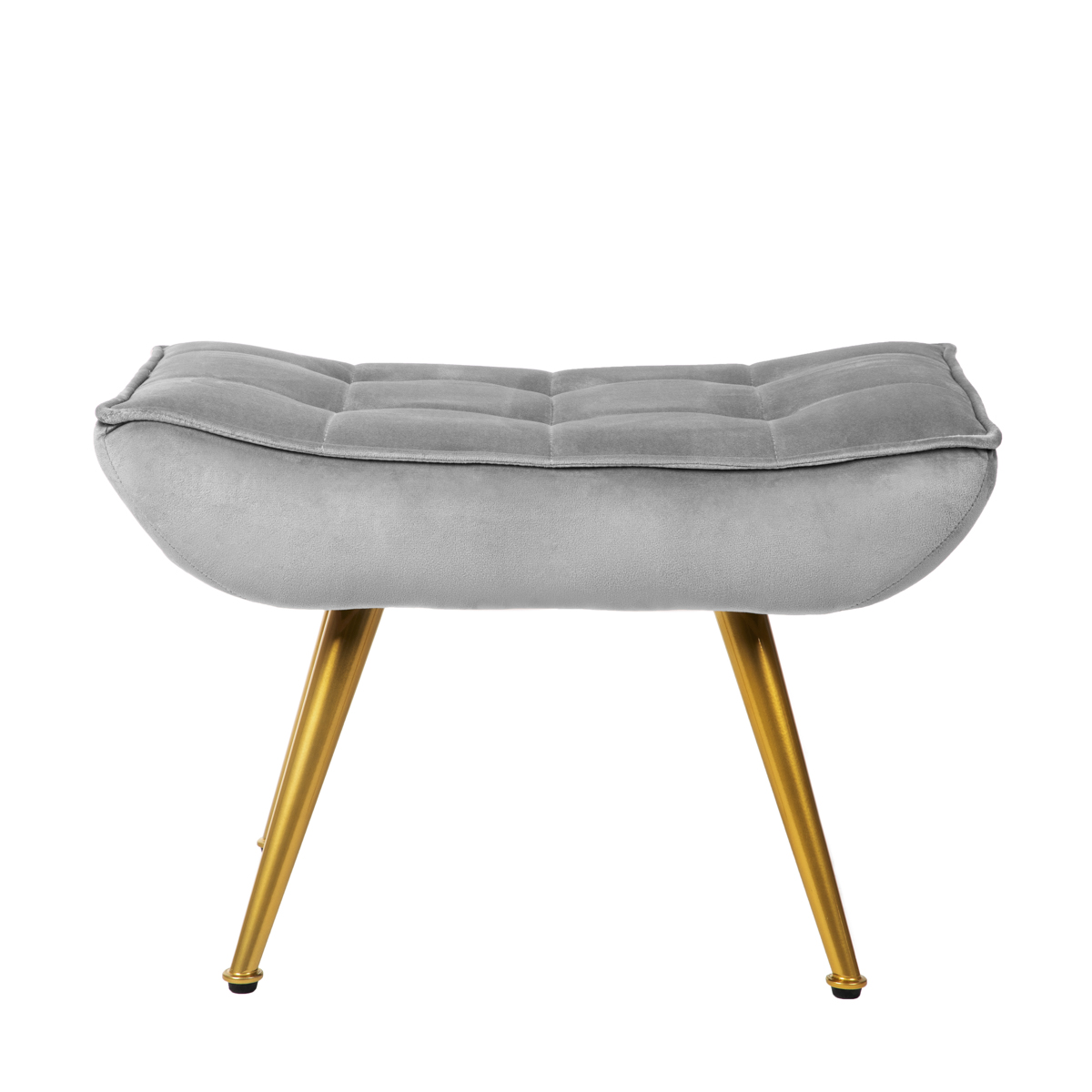 Are you looking for a piece of furniture that will let you relax after a hard day? The VINNIS armchair will do the job perfectly. It comes with a footrest, on which you can put your legs out while sitting. The set is characterized by a coherent design – both the armchair and the footstool are upholstered with grey upholstery, decorated with stitching. The furniture is set on golden metal legs, which introduce an element of lightness and elegance.