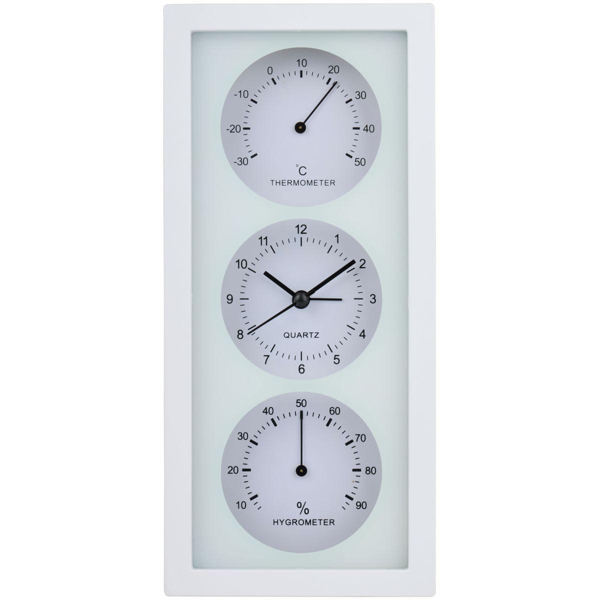 TERMOMETER HIGROMETER TIME Clock 26X5x12CM ARTICASA WHITE is elegance and modern design, it is simply the perfect addition to any interior!
