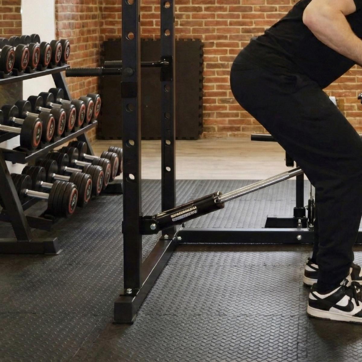 - Long safety bar: maximum load 135 kg / 298 lbs