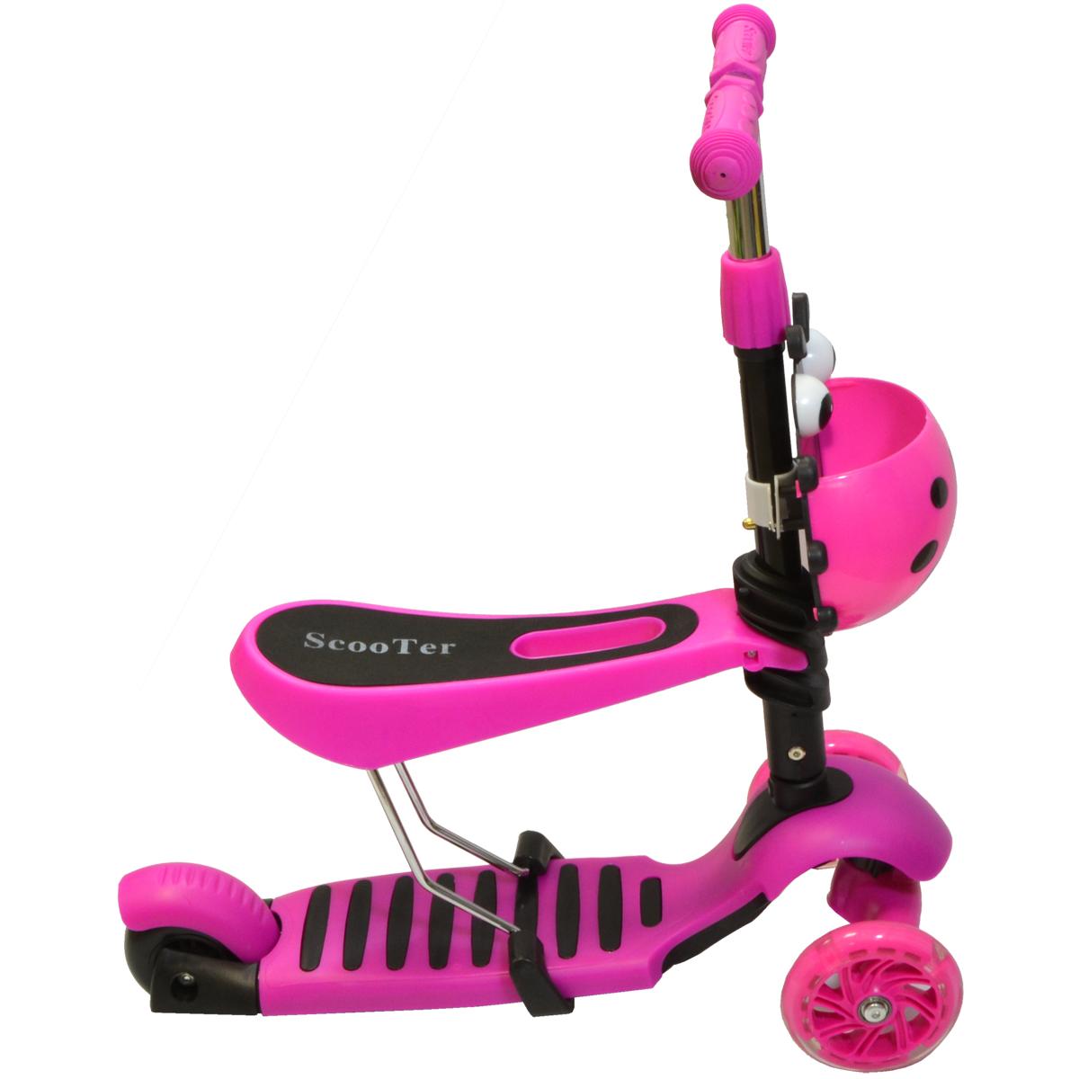 - contoured removable seat will allow you to quickly turn the rider into a scooter
