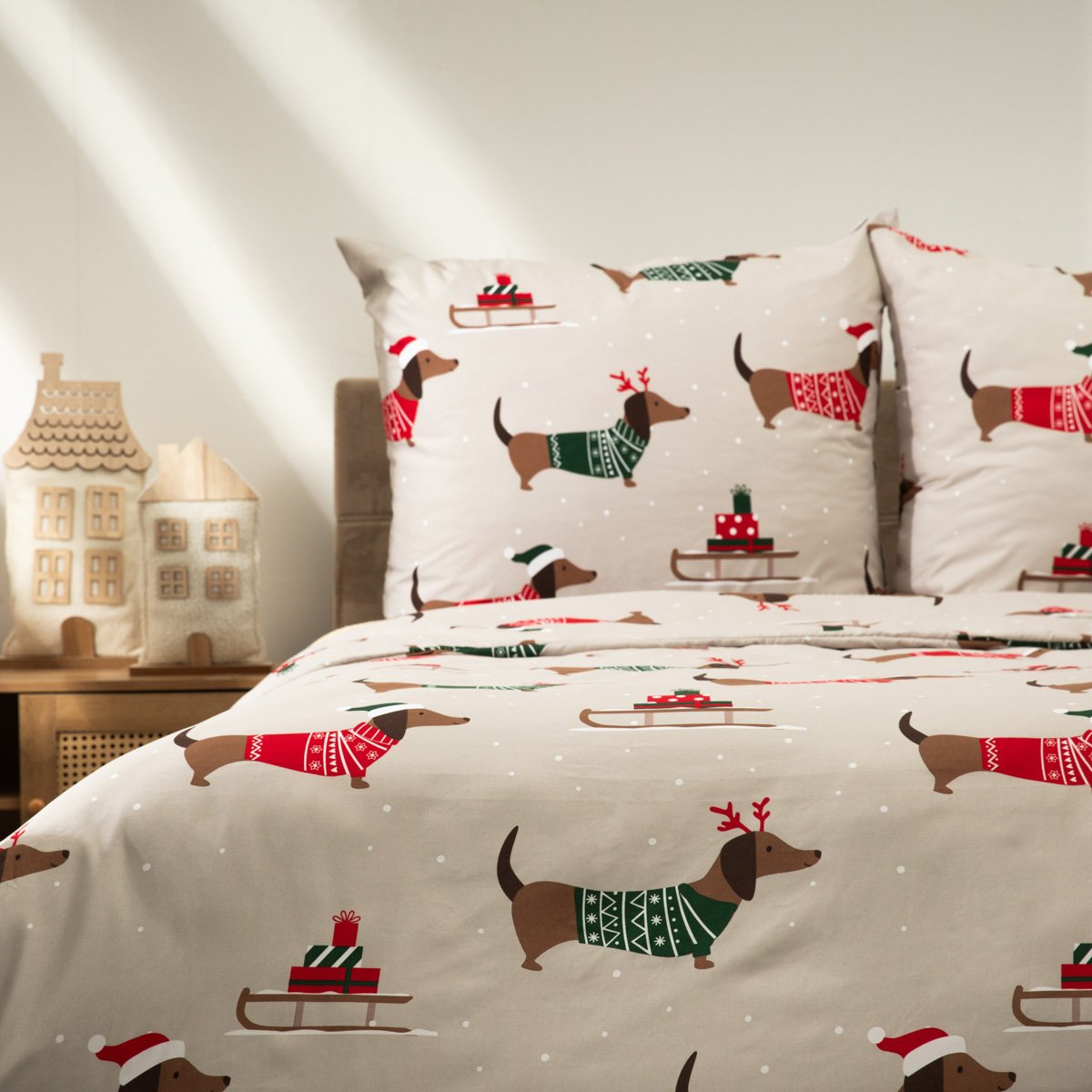 The microfiber bedding with adorable dachshunds and Christmas trees will steal the heart of any animal lover. You’ll be able to bring a festive atmosphere full of magic into your bedroom with this unusual bedding set. Create a unique arrangement by choosing an elegant set of GENESIS duvet covers and pillowcases for a comfortable sleeping and resting experience. The duvet holds warmth well, guaranteeing comfort on cooler nights, while being durable and resistant to abrasion.
