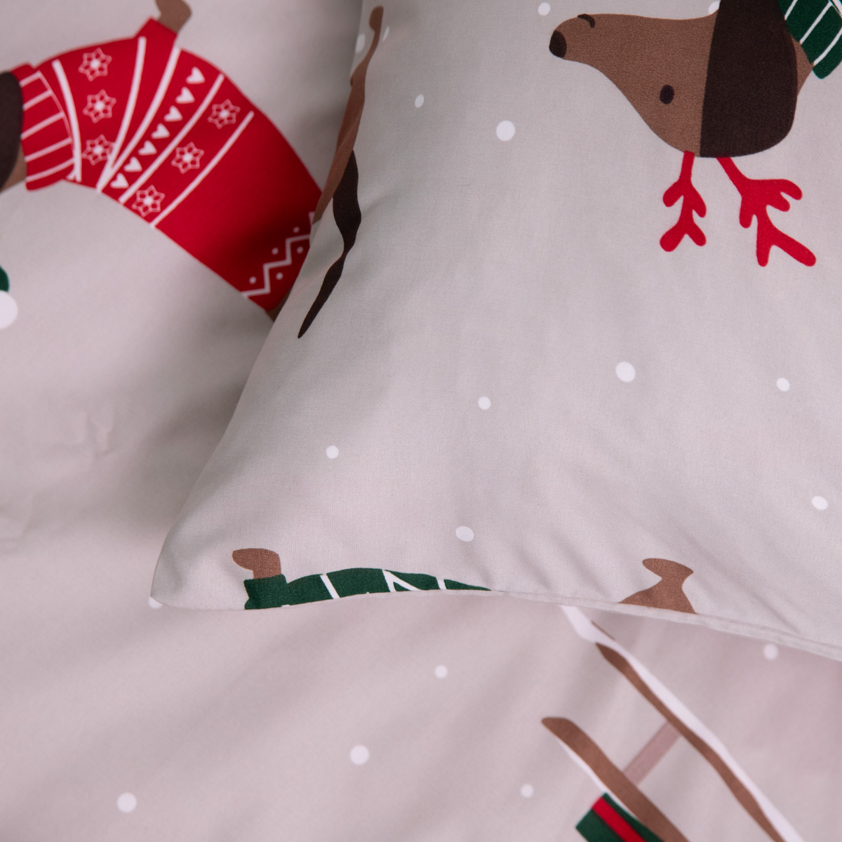 The GENESIS Christmas bedding set consists of a 160 x 200 cm duvet cover and two 70 x 80 cm pillowcases. With its harmonious pattern with dachshunds, Christmas trees and twinkling lights, it will bring unique charm and warmth to your interior during the festive season.