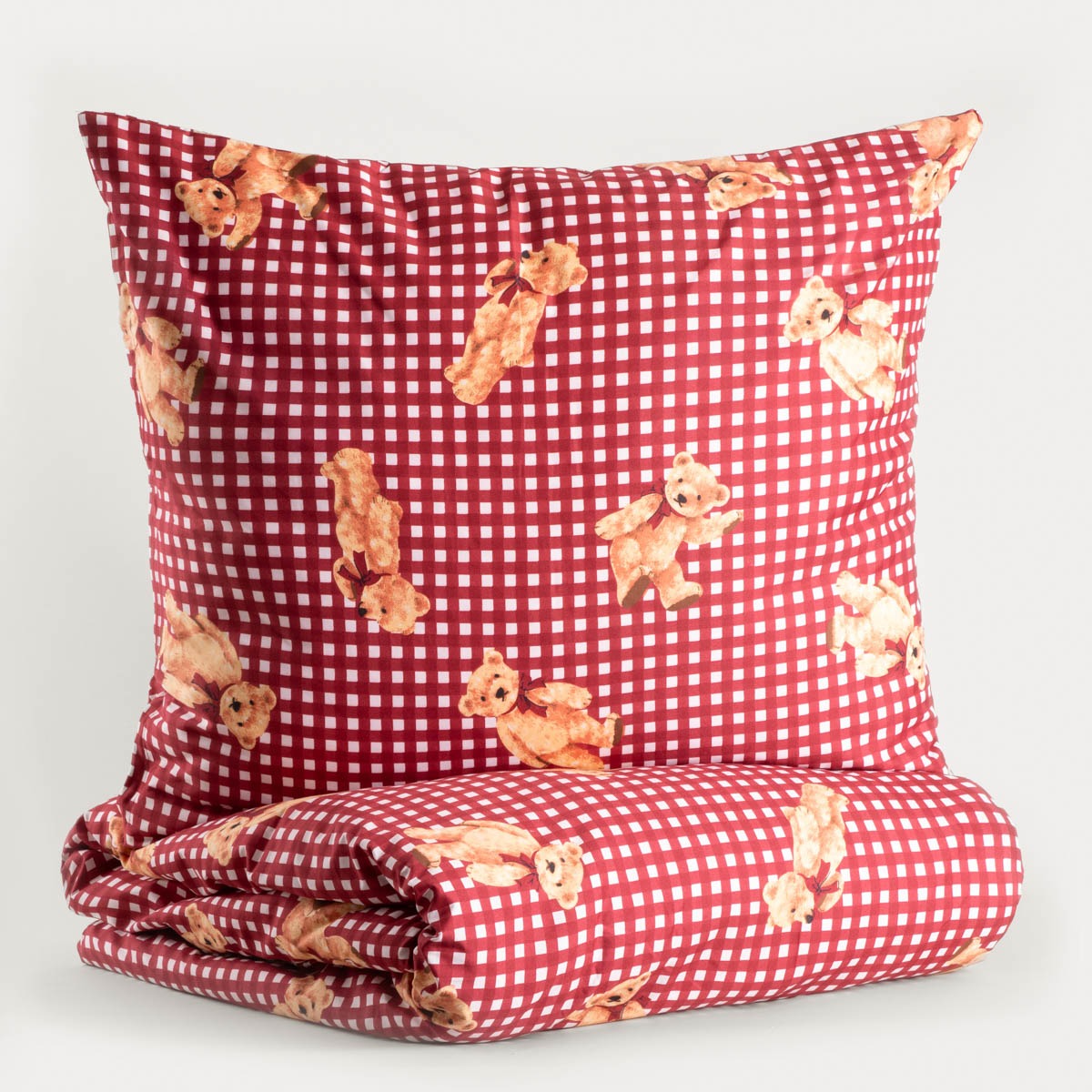NALLAR bedding is a unique set that combines comfort and cosy design. Adorable teddy bears against a red checkered background give the bedroom a warm, cheerful feel and create a unique atmosphere. Made of fine microfiber, the bedding is soft to the touch and comfortable to wear, ensuring a peaceful and pleasant sleep every night.