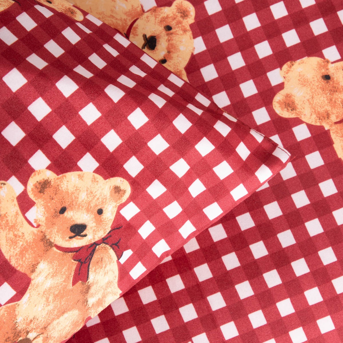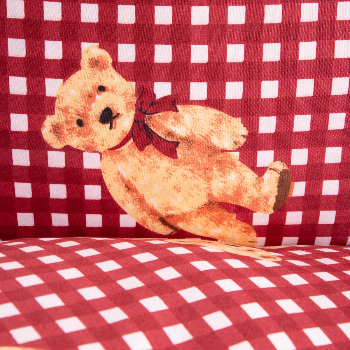 - Cute teddy bear pattern on a red checkered background