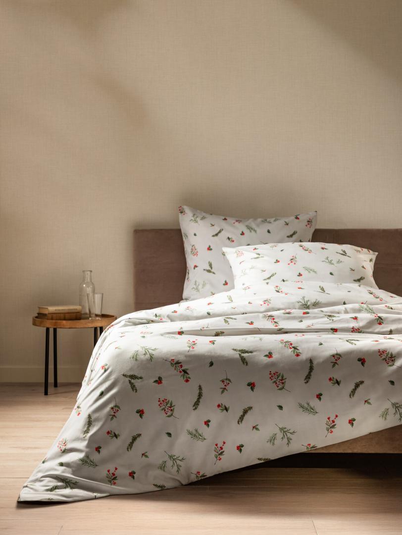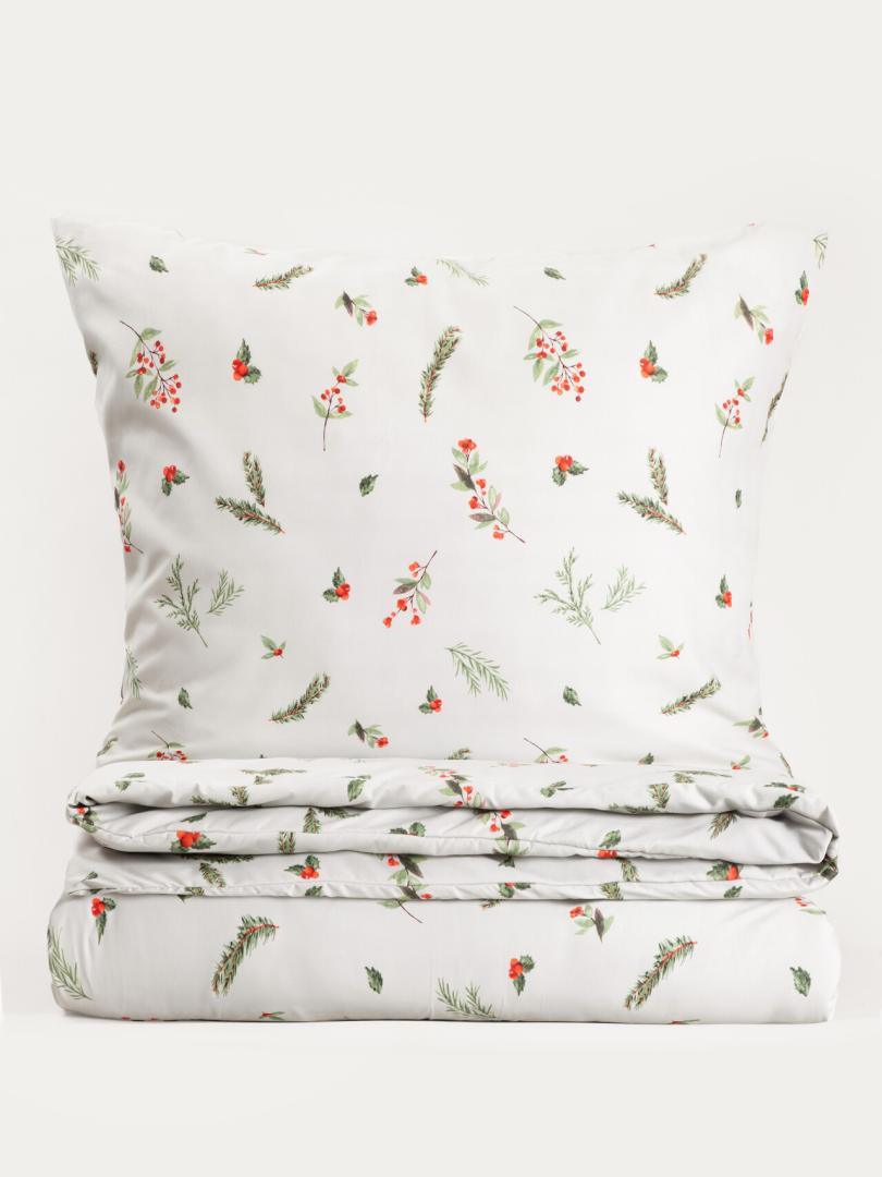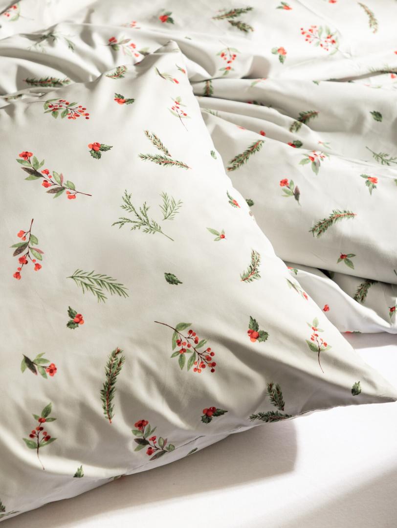 NATALE olive bedding in festive print 220x200cm + 2 x 70x80cm microfiber, pillows 70x80cm x 2