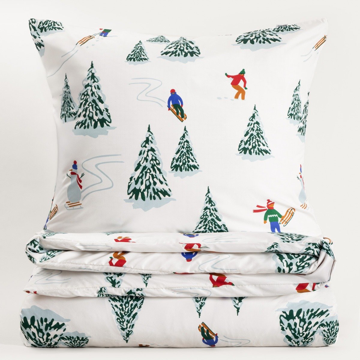 Winter evenings can be made even more special by simply stocking up on beautiful, soft bedding with a winter theme. The elegant pattern with skiers on a white background will blend in perfectly with both modern and classic interiors. Add character and a unique atmosphere to your bedroom.