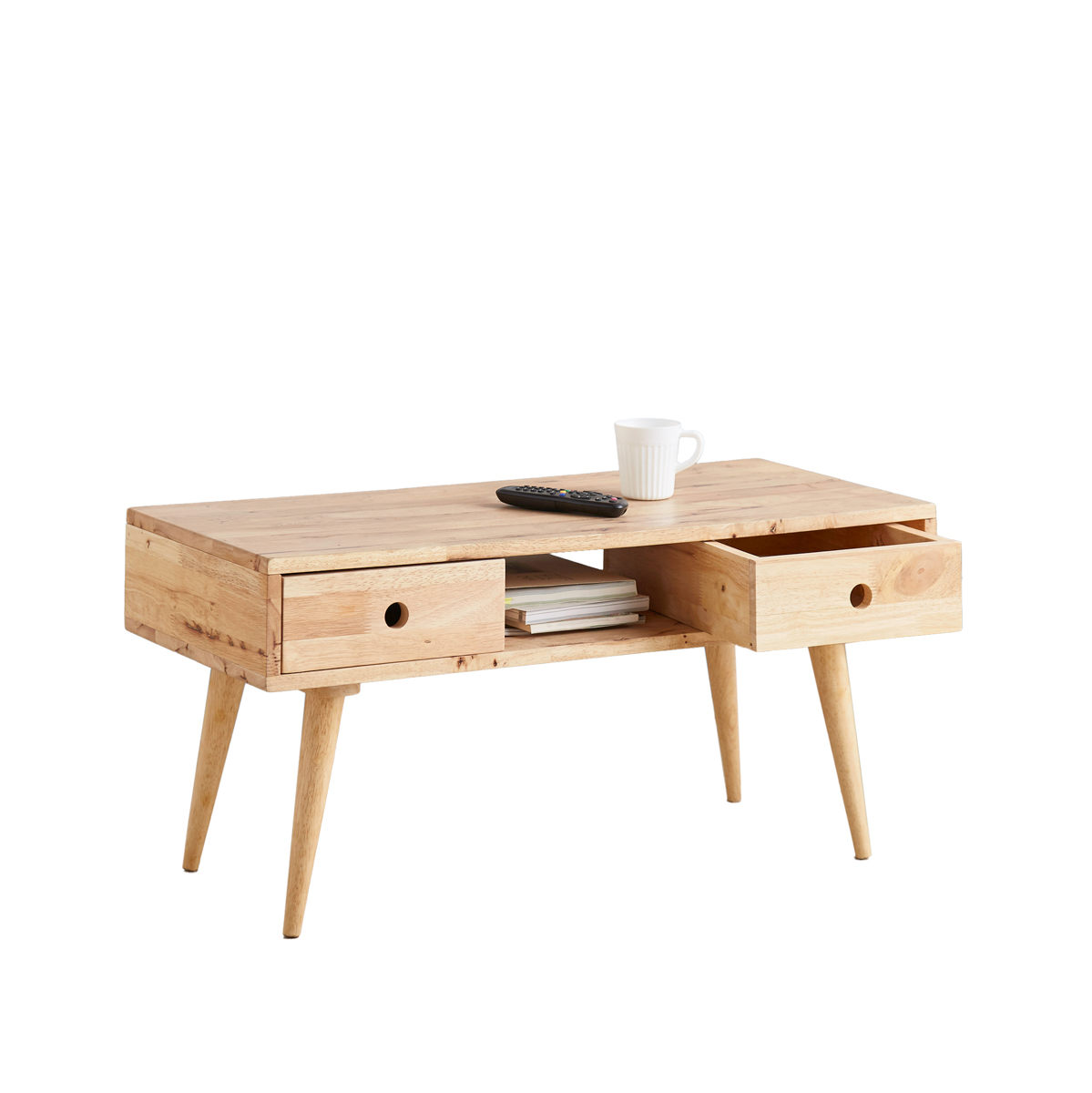 The HOMLA SERENO wooden bench will be perfect as a coffee table for the living room. It will look great surrounded by lounge furniture, where it will allow you to comfortably put down a cup of warm drink. Under the top of the bench we have placed 2 capacious drawers and a shelf, thanks to which you will gain additional storage space. The natural design makes the bench fit perfectly into minimalist, boho and Scandinavian style spaces.