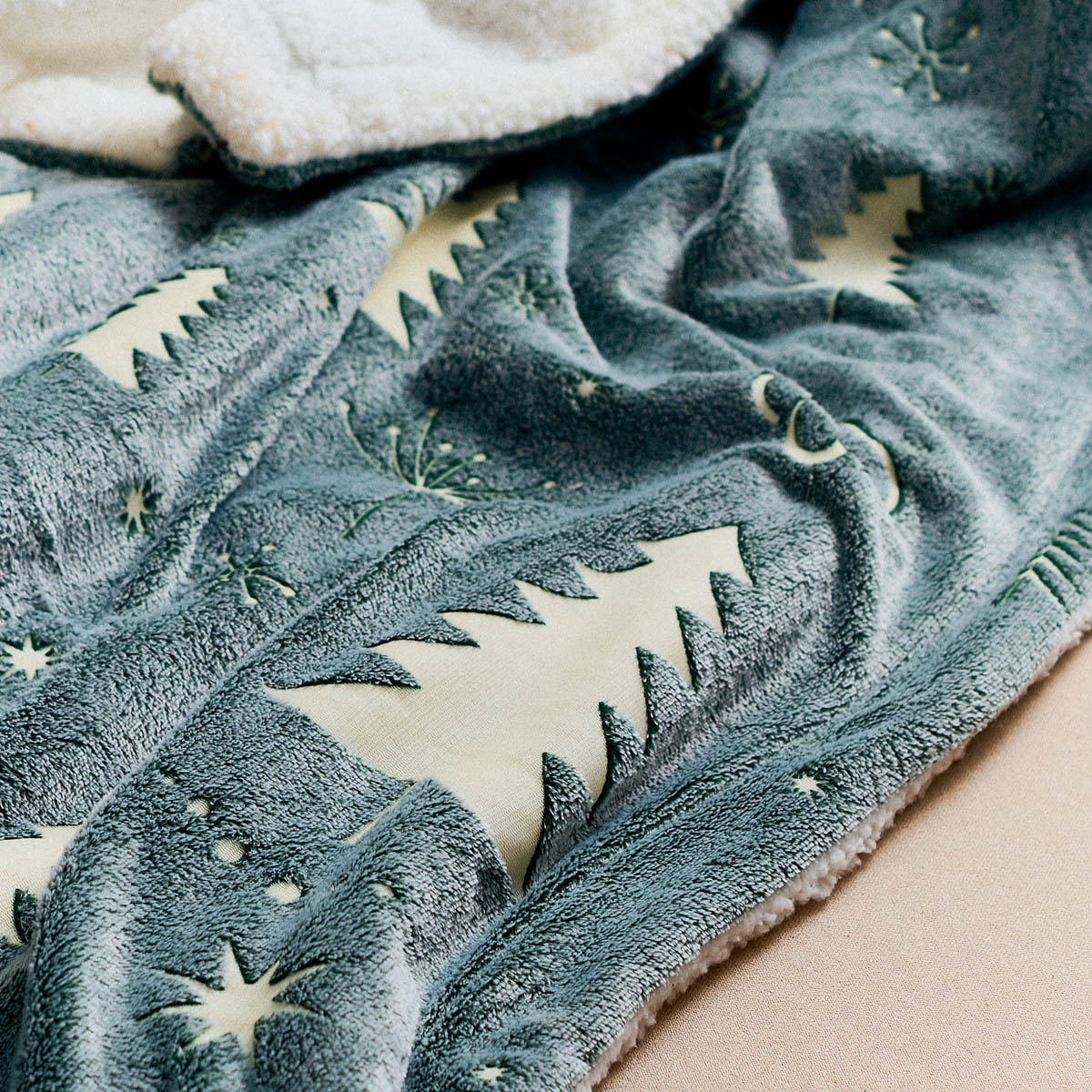 The blanket is great for winter evenings on the sofa, watching your favorite movies or reading a book. Thanks to its luminous elements, LUMINOSO will bring a touch of Christmas magic to your interior. To make the blanket “glow”, it should be exposed to light during the day.