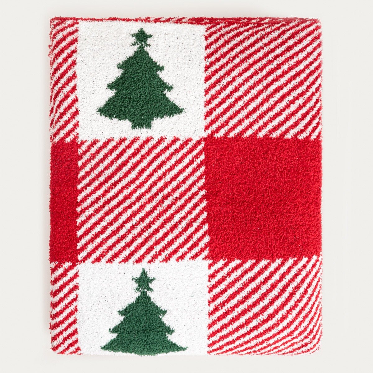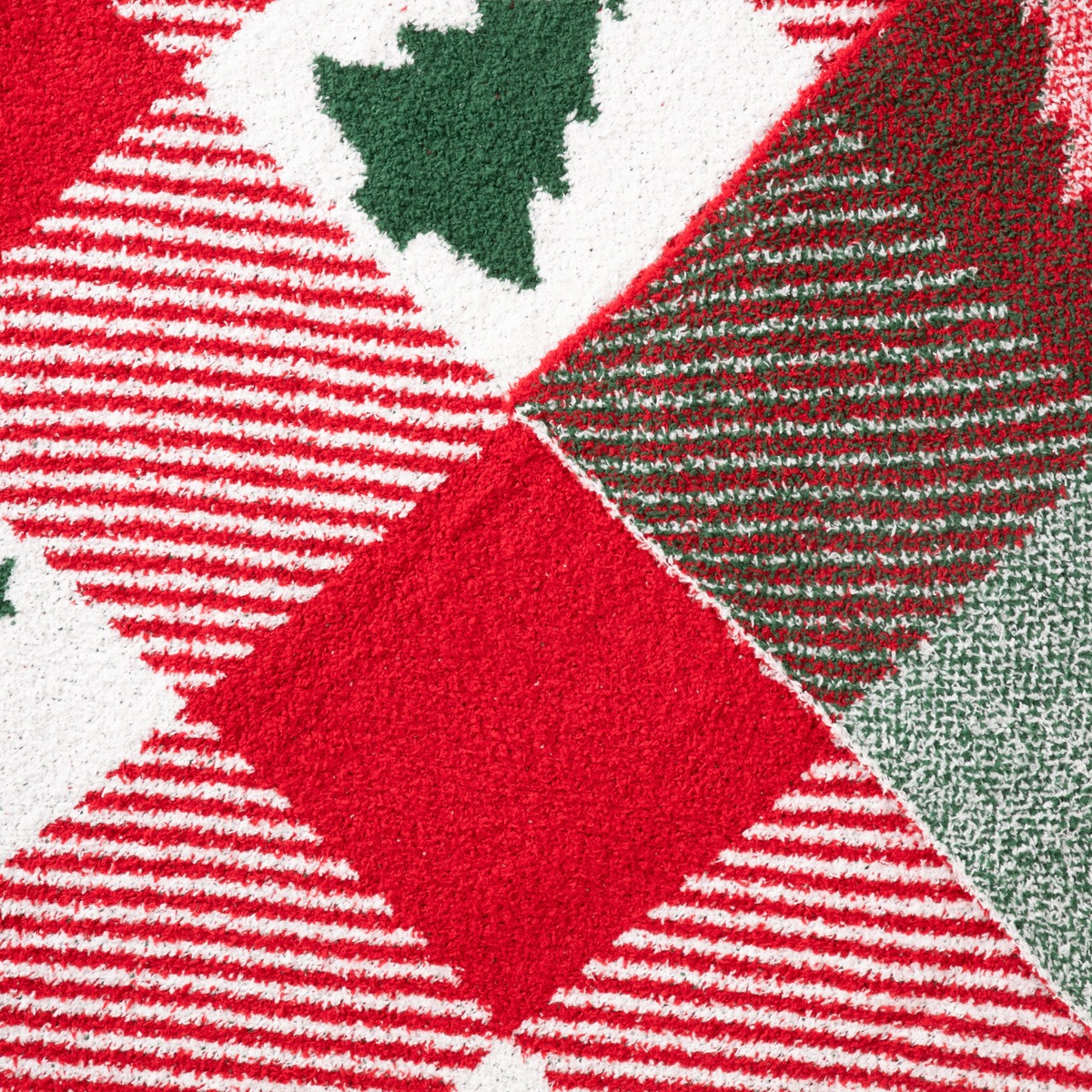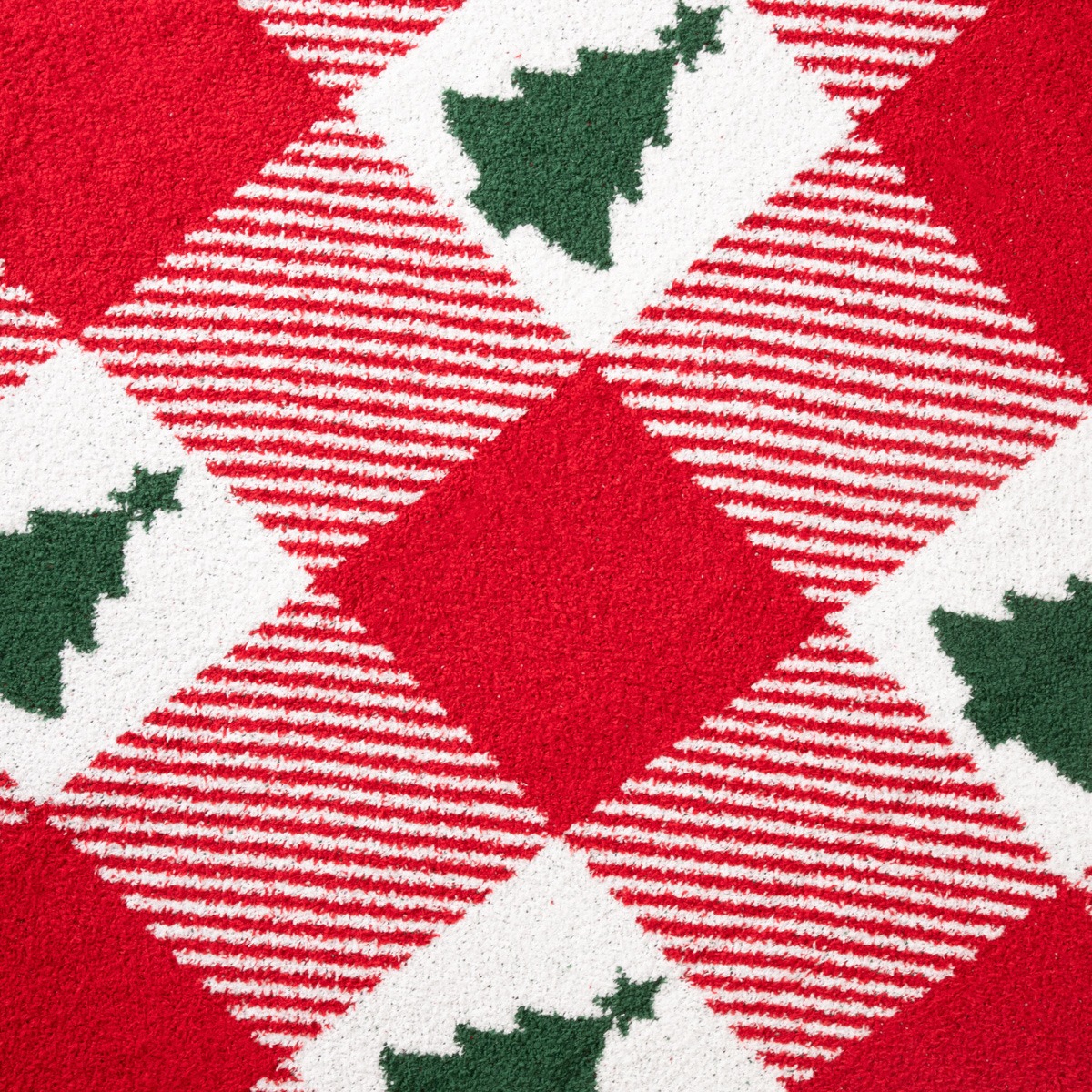 150×200 cm red and white jacquard blanket with Christmas tree motif