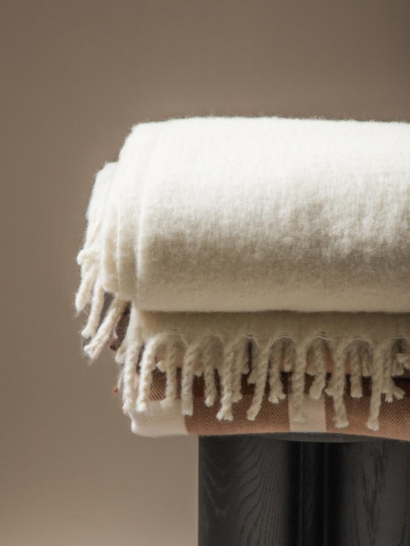 Are you looking for a blanket that not only warms but also decorates your interior? The TAIN blanket in the shade of écru is the perfect choice. The soft, light color brings peace and harmony to your interior, and thanks to the addition of wool, it is not only warm but also extremely pleasant to the touch. It is perfect as a practical bedspread, a companion for evening relaxation or as a stylish accent piece in the living room.