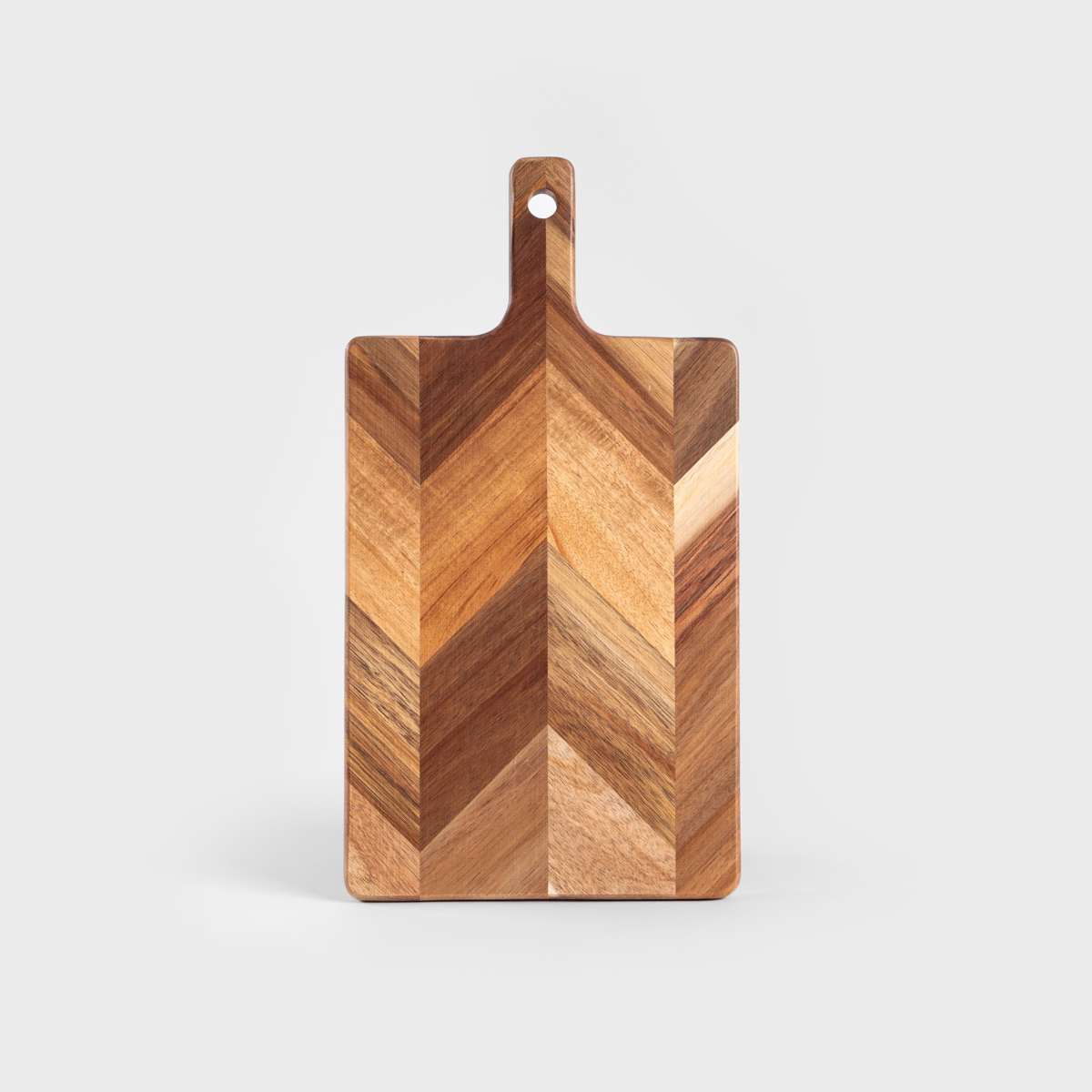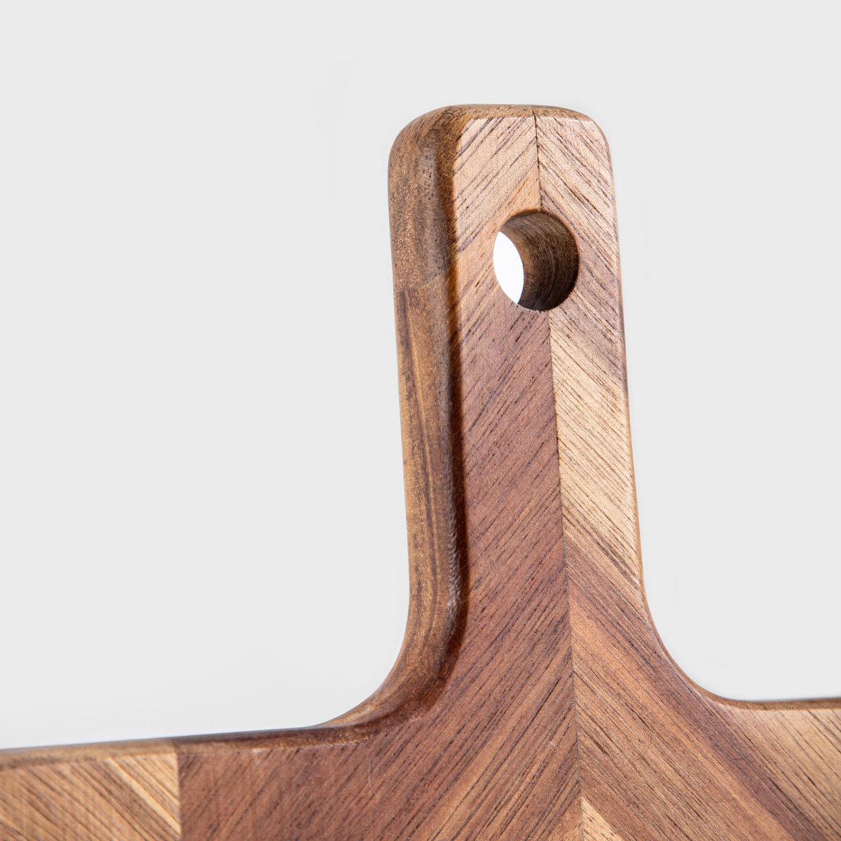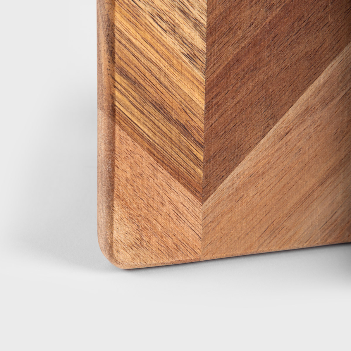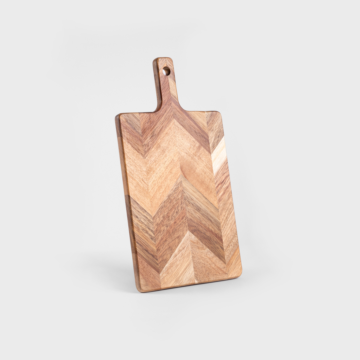 The NEVADO board will enrich any beautifully set table. The unique herringbone pattern, achieved by subtly varying the tones of the wood, gives the board a unique look that is eye-catching and provides the perfect backdrop for cheese, fruit and other delicacies.