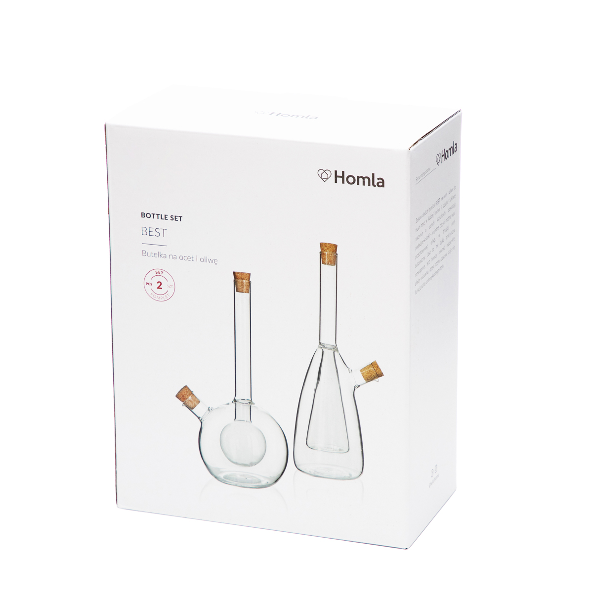HOMLA BEST bottles are made of transparent glass, so you can see exactly what each container contains. The necks of the bottle are plugged with a natural cork.