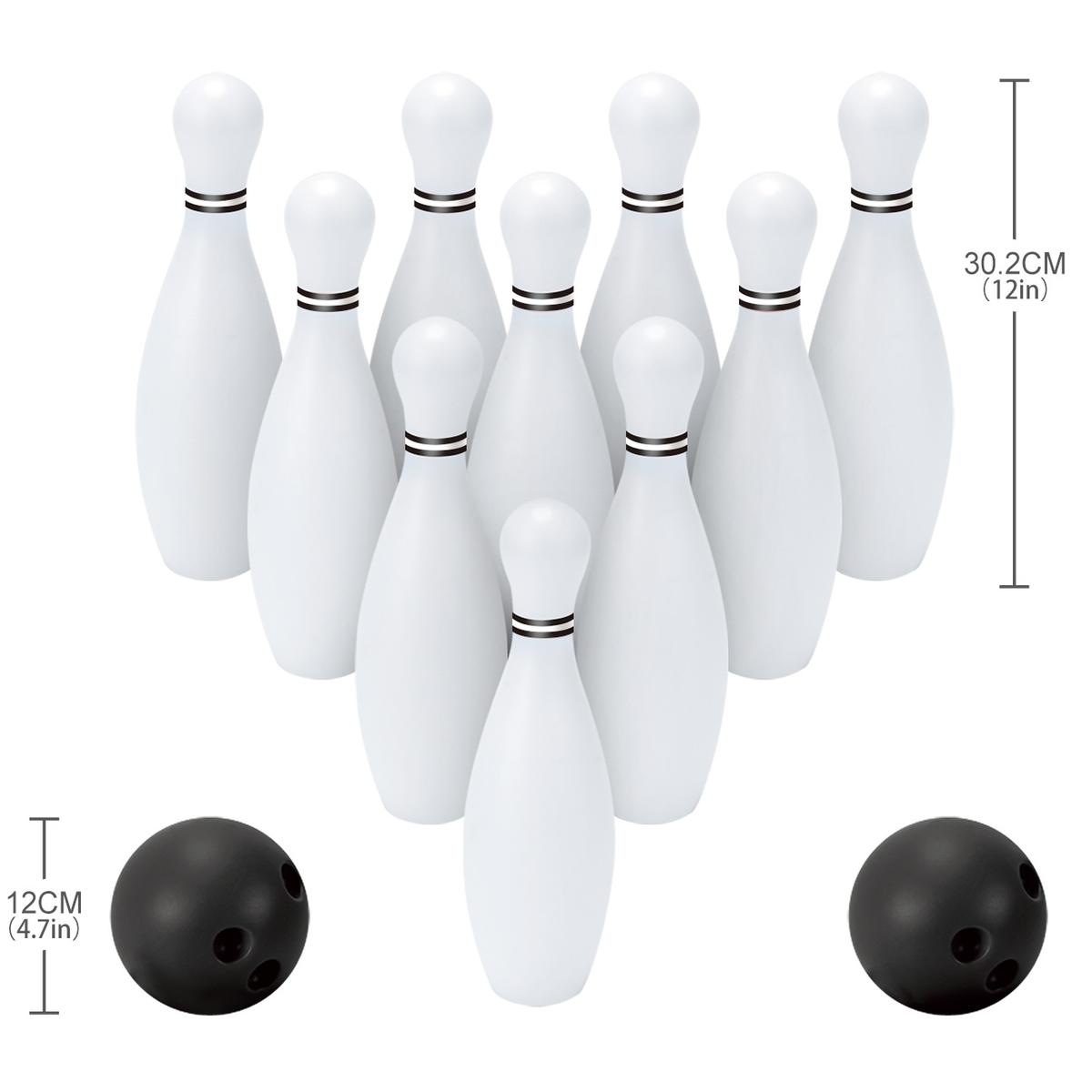 The set includes 10 skittles + 2 balls and allows you to play alone or in pairs. The balls are lightweight and have a smooth surface, and the bowling pins stand firmly even on the floor or grass….