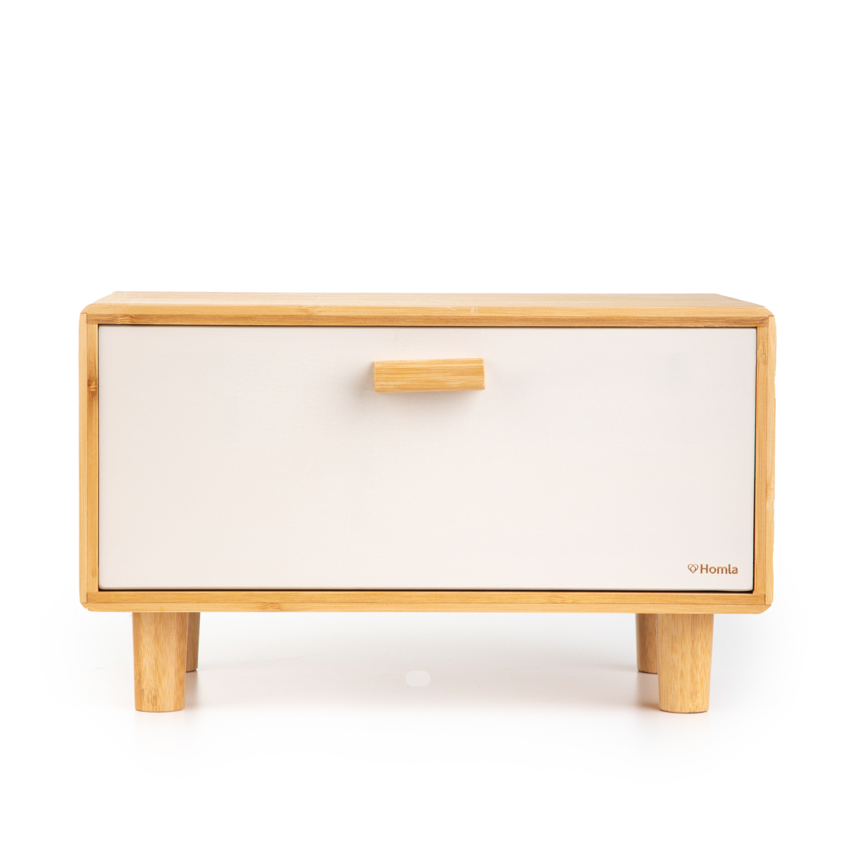 The BAMBOU Bread Bin will create a convenient place to store bread, rolls, yeast breads and other bakery products. It will perfectly fit into kitchen interiors inspired by Scandinavian, boho, minimalist and modern styles. The cream color of the door blends perfectly with the natural color of the wood, creating a combination full of style and elegance.