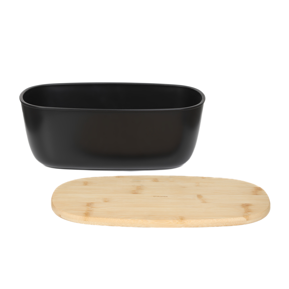 Breadbox | NORES | with bamboo lid black | 37x22x14 cm | 882666
