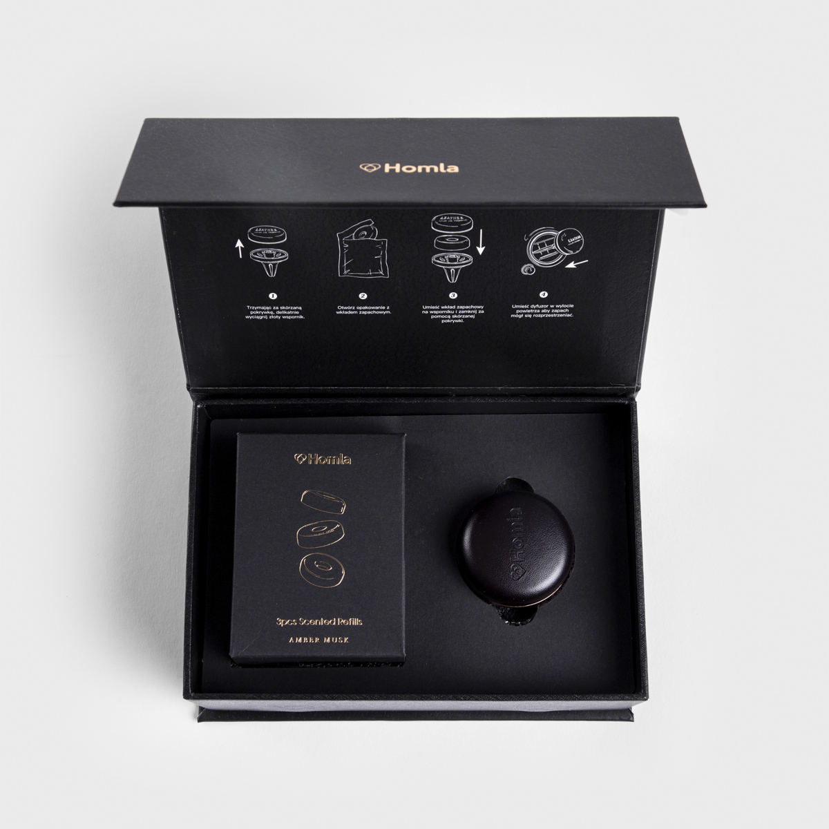 Car fragrance set | SLEEK LEATHER | Amber Musk | 16x6x11.5 cm | 708589