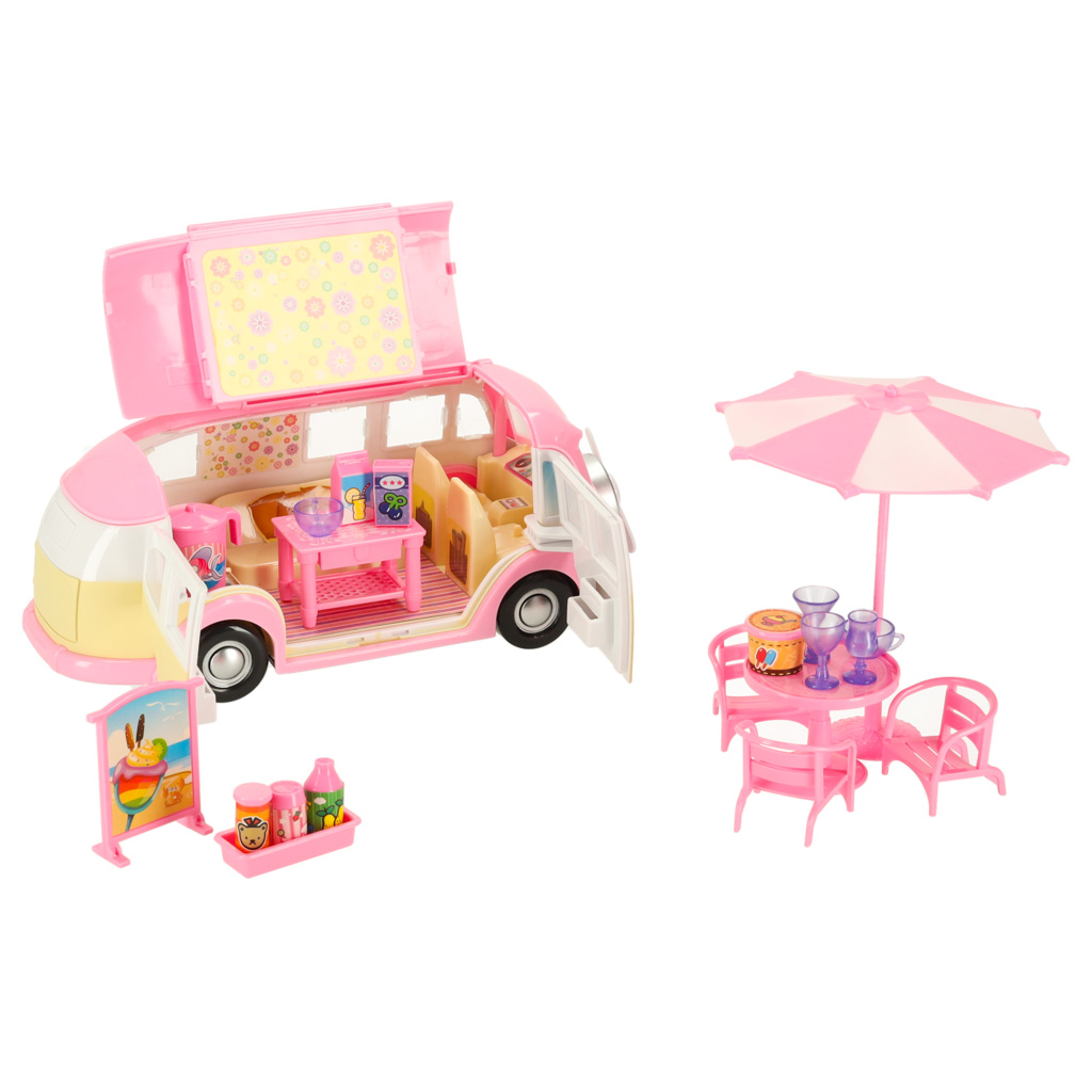 The dollcar inspires spontaneous ideas, allowing children to run their own ice cream store as if they were on a vacation trip. The fold-outcamper is a cleverly designed fold-out car that creates a space where scenarios change like a kaleidoscope. The openable doors of the camper add realism, and the perfectly matched accessories provide convenience during playtime