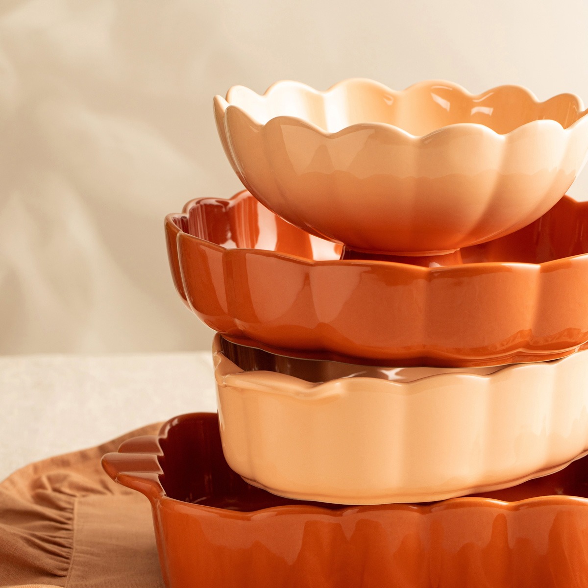 The BRISA round dish is perfect for preparing casseroles, tarts, vegetable dishes and hot desserts. Thanks to its aesthetic design, you can directly transfer it from the oven to the table, serving food in an elegant way. The form and color go well with classic, rustic and traditional kitchens.
