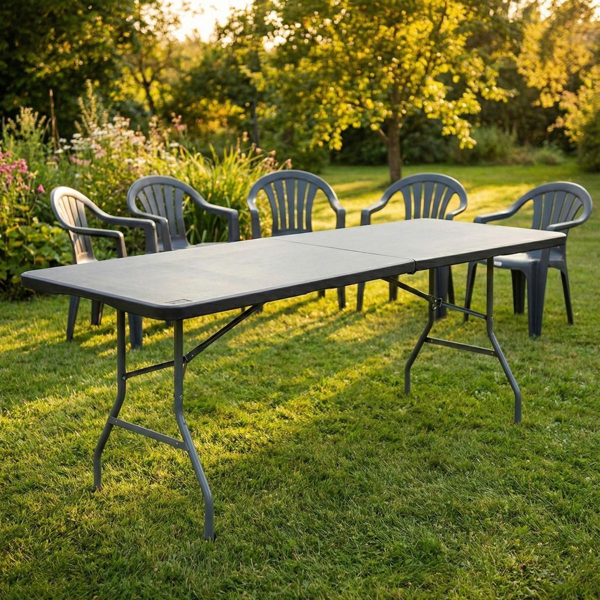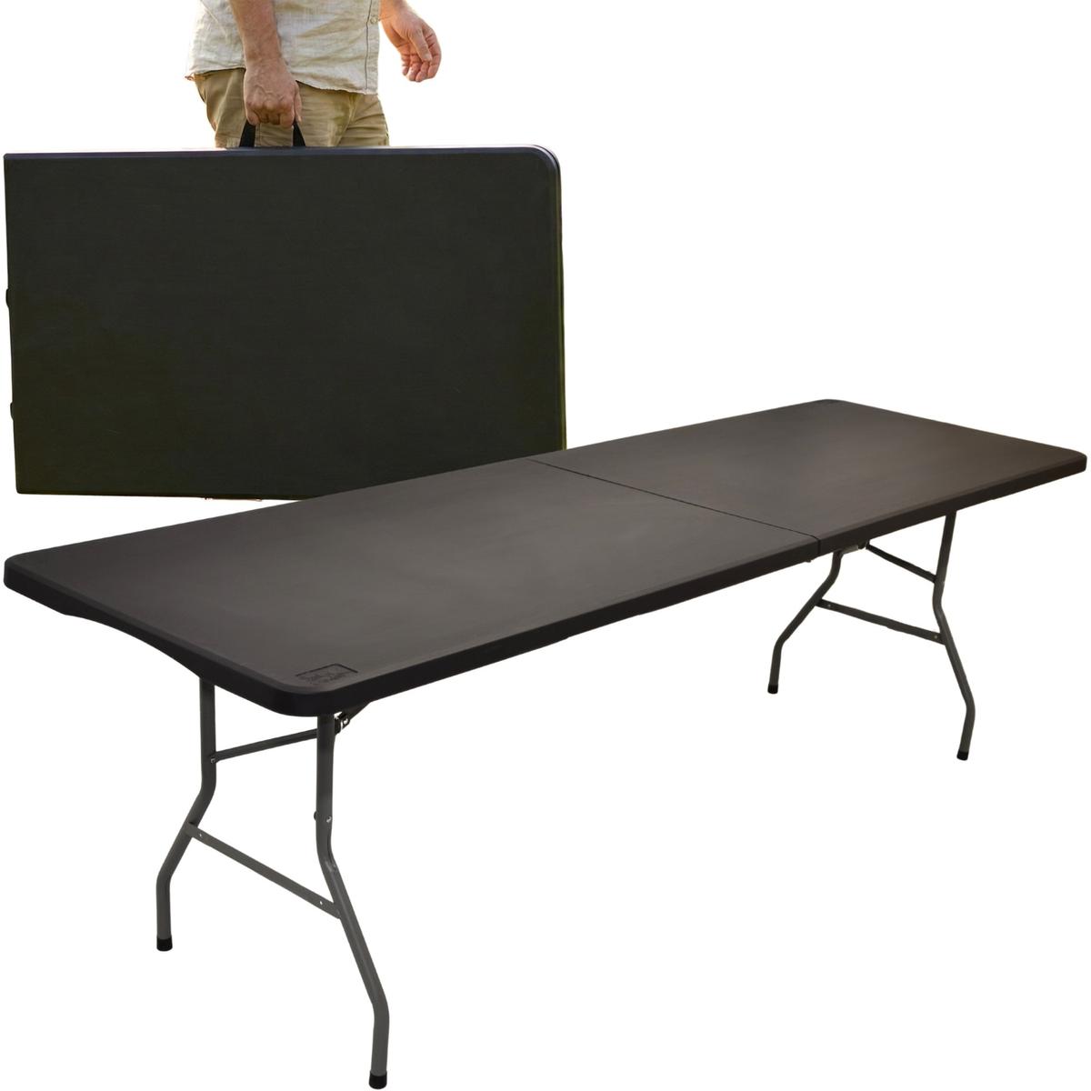 Need a large, sturdy and mobile table for your event, catering, party or garden? CATERING TABLE FOLDING IN CASE 240x74x74CM 150KG BLACK is a reliable choice if you value maximum working space, stability up to 150 kg and instant assembly. It folds into a convenient suitcase, and its modern black HDPE top is resistant to heavy use and weather conditions.