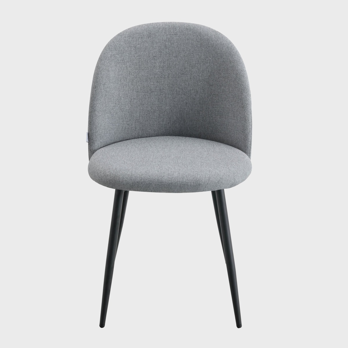 The AMPLA chair combines modern minimalism with timeless elegance. The delicate light grey upholstery gives it a subtle character, while the ergonomic form ensures comfort during everyday use. Black metal legs add to its stability and durability.