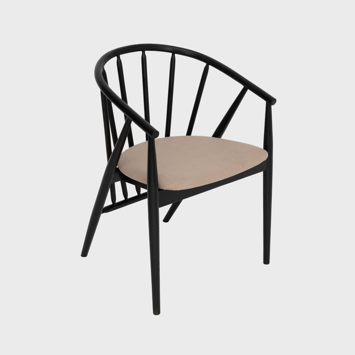 Looking for a unique chair that combines classic charm with a modern touch? The CALIDO chair is the perfect choice! Its slim black design gives it a subtle lightness, while the beige cushion ensures comfort even when sitting for long periods.