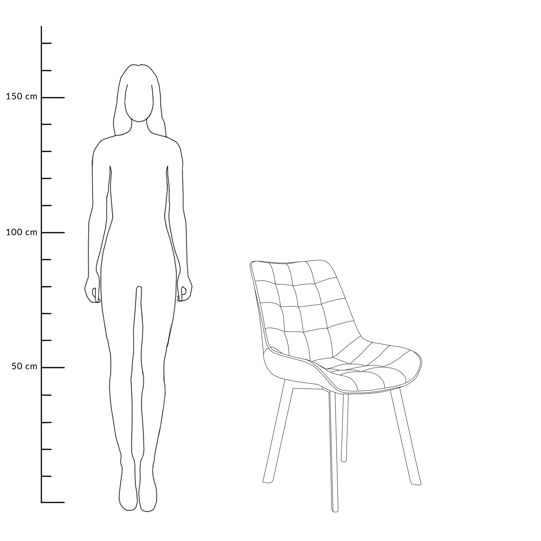 The product was finished with velour in a shade of noble green, which was decorated with beautiful quilting. Both the seat and the backrest are characterized by extraordinary comfort, thanks to the appropriate width and profiling. The whole structure is very stable, for which the strong black metal legs are responsible. The width of the chair is 53 cm, the height is 83 cm, and the depth is 51 cm. The load on the seat is a maximum of 120 kg. Other color versions of upholstery are also available.