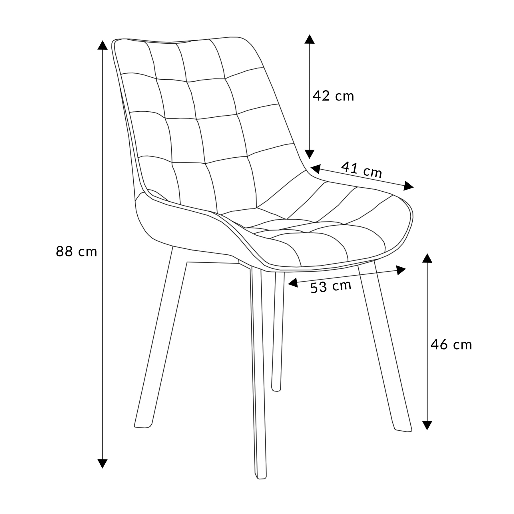 The chair has a very comfortable and wide backrest and seat, so it will provide comfort to any user. The interesting form, which consists of beautiful quilting on the velour grey upholstery, is complemented by stable black legs. The chair is 53 cm wide, 83 cm high and 51 cm deep. The seat load is a maximum of 120 kg. Other color versions of the upholstery are also available.