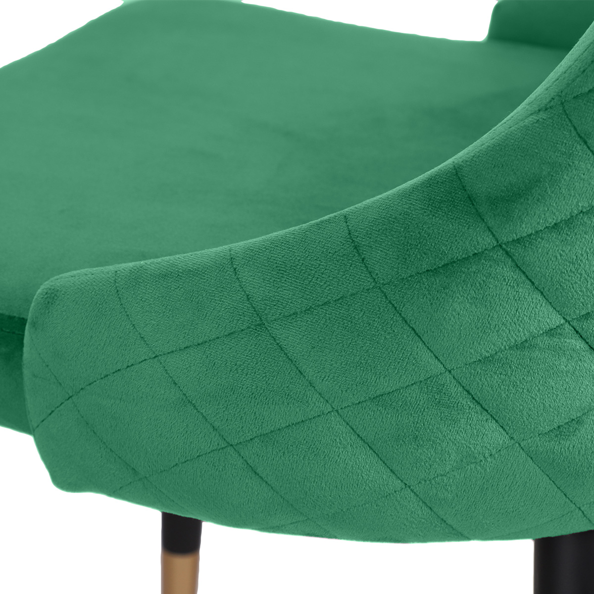 If you dream of an unobvious, but still subdued color combination within the limits of simple elegance, you will certainly like the LOGAN green chair. Decorative quilting on the outer part of the backrest coherently matches the sophisticated color scheme – a combination of gold, black and a distinct emerald green shade. The furniture will emphasize the glamour character of all interiors built on the basis of minimalism.
