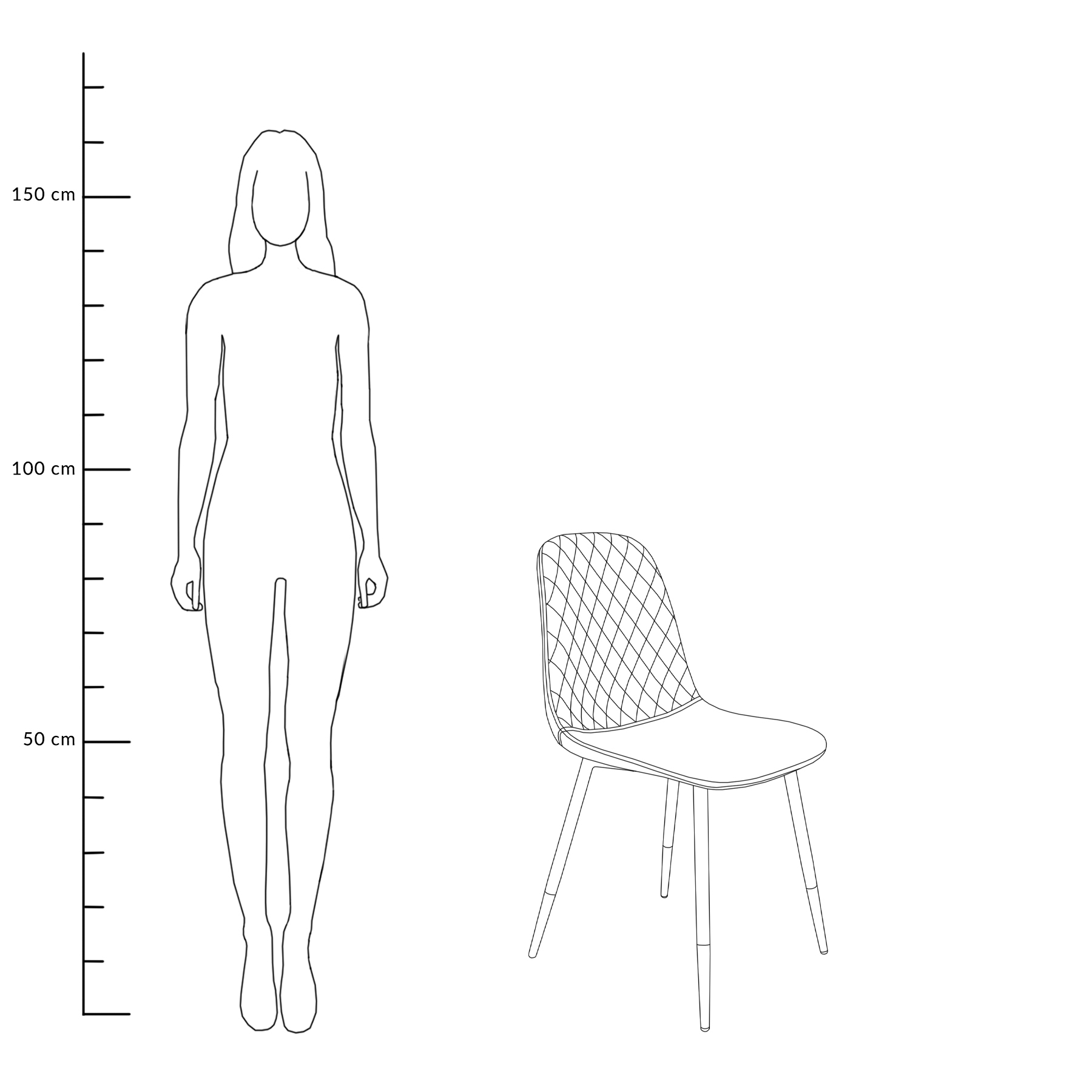 The NOIR chair catches the eye with its symmetrical diamond quilting, which is a decorative element of the gently profiled backrest. It provides maximum comfort and adapts to the user’s anatomy, supporting the silhouette. The L-shaped seat and backrest are set on straight, dual-colored legs with a circular cross-section.