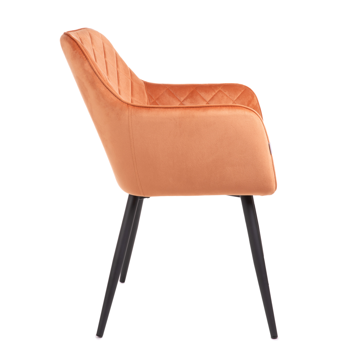 Looking for a trendy chair to liven up your interior design? The HOMLA SHELTON aka our chair is perfect for this role! The seat is set on metal legs in a beautiful brick-red color, which will look great against a white or wooden table top. The backrest and armrests have been decorated with quilting, which adds even more style to the furniture, making the chair a wonderful complement to the arrangement.