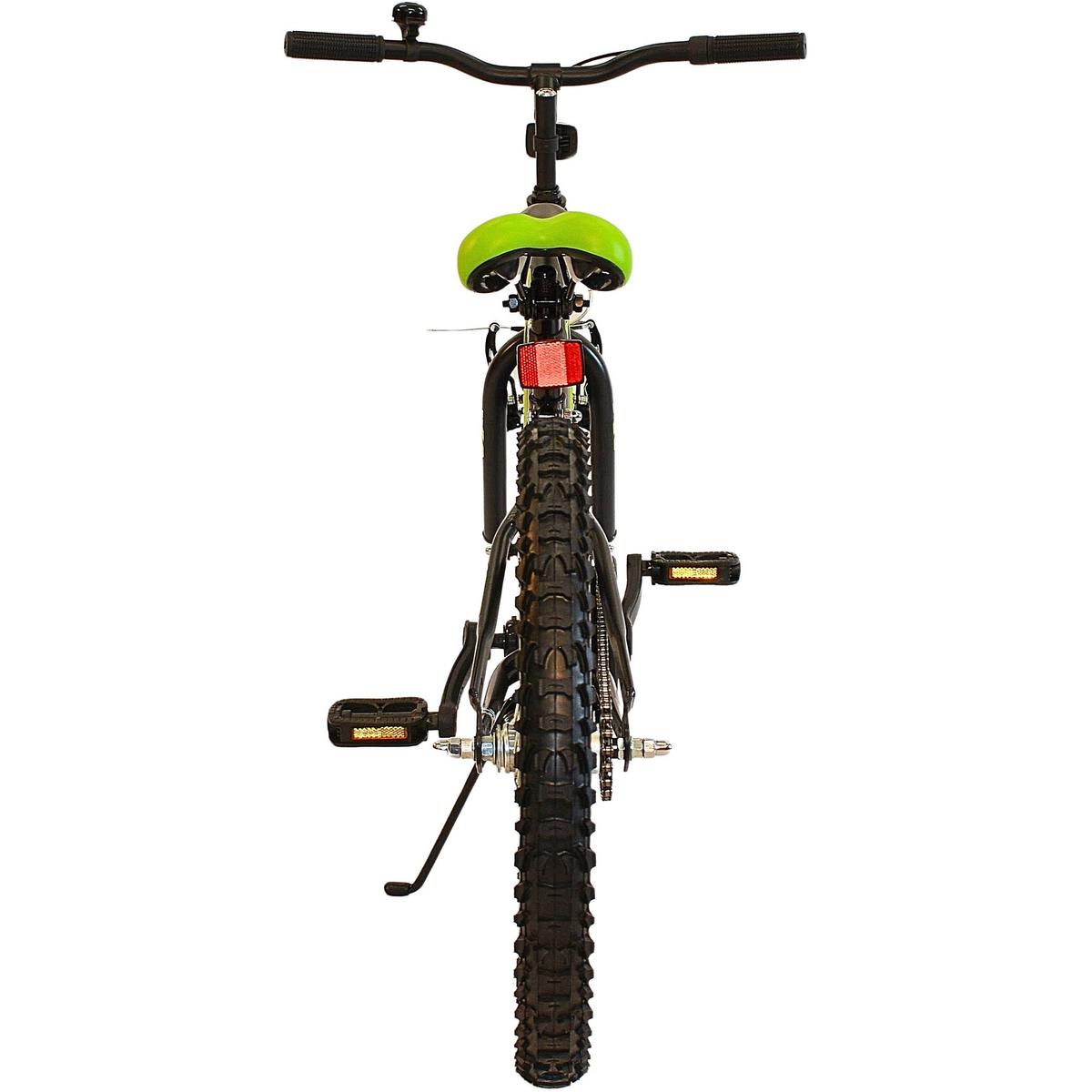 This model is distinguished by a dynamic black and green color scheme, which gives it a sporty and modern look, ideal for young two-wheeled enthusiasts. The aggressive lines of the frame and contrasting details make the bike look very striking and emphasize its original character.