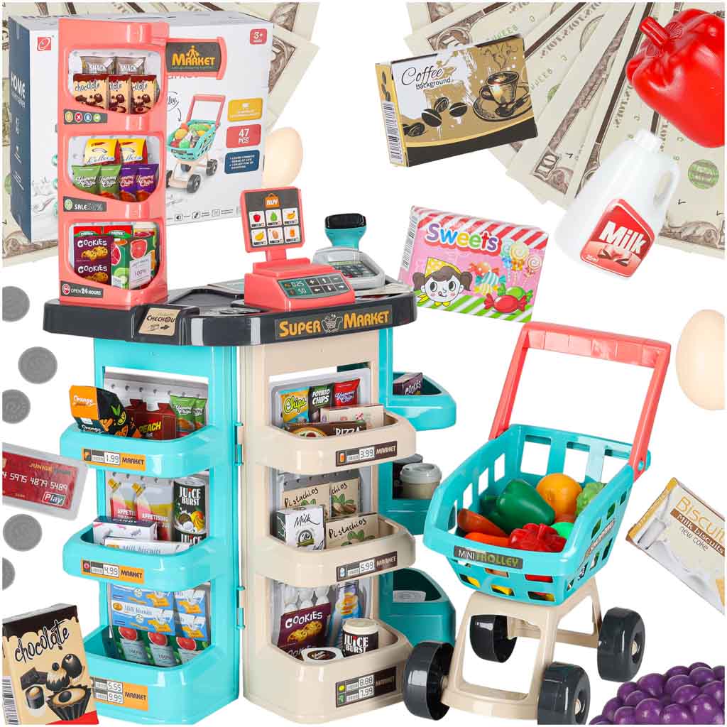 Children's store supermarket stall shopping cart accessories mintChildren’s store supermarket stall shopping cart accessories mint