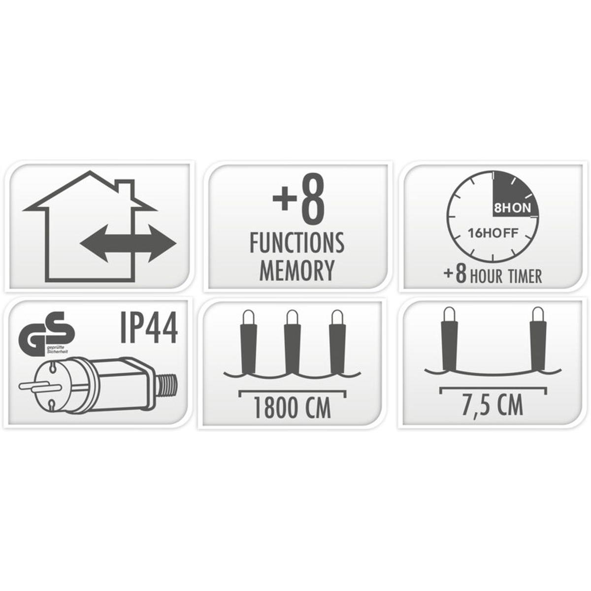 Looking for a Christmas tree light with a WOW effect! This light chain of warm white 240 LED lights with timer will beautifully illuminate your Christmas tree and more both indoors and outdoors!